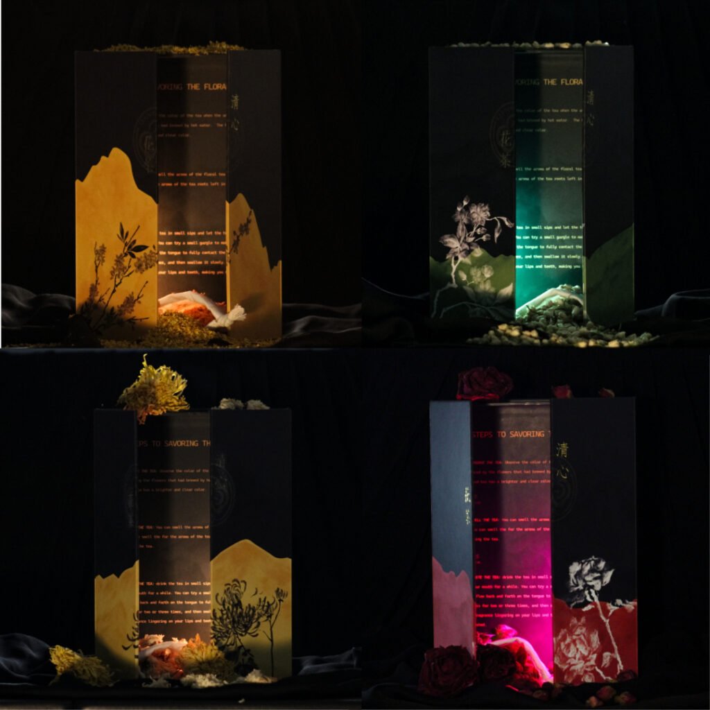 Qingxin Chinese Floral Tea (清心花茶) is a Chinese floral tea brand that aims to help foreigners better understand and experience the Chinese floral tea tasting culture through its unique packaging design and immersive interactive projections, providing a first step towards Chinese tea culture for international first jobber. Every cup of tea comes from every flower, and every flower comes from nature. Tea tasting is a way of tasting nature. The project hopes to use the Chinese flower tea brand “Qingxin” to lead the world to understand Chinese floral tea.